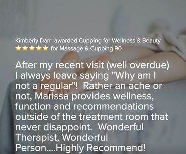 Cupping therapies bring hydration back into the fascia thus leaving your body with less tension, aches and pain. Often, clients feel more "spacious" in their body when receiving cupping therapy combined with fascial massage. Better range of motion and more freedom through the spine is also often reported and demonstrated post cupping massage.